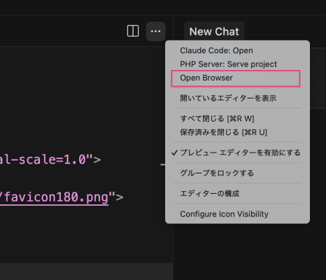ちなみに触ってみたい場合は、エディタのここからブラウザが起動できます。