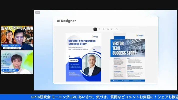 - @AIDesigner: ポスター、フライヤー、SNS画像を生成
